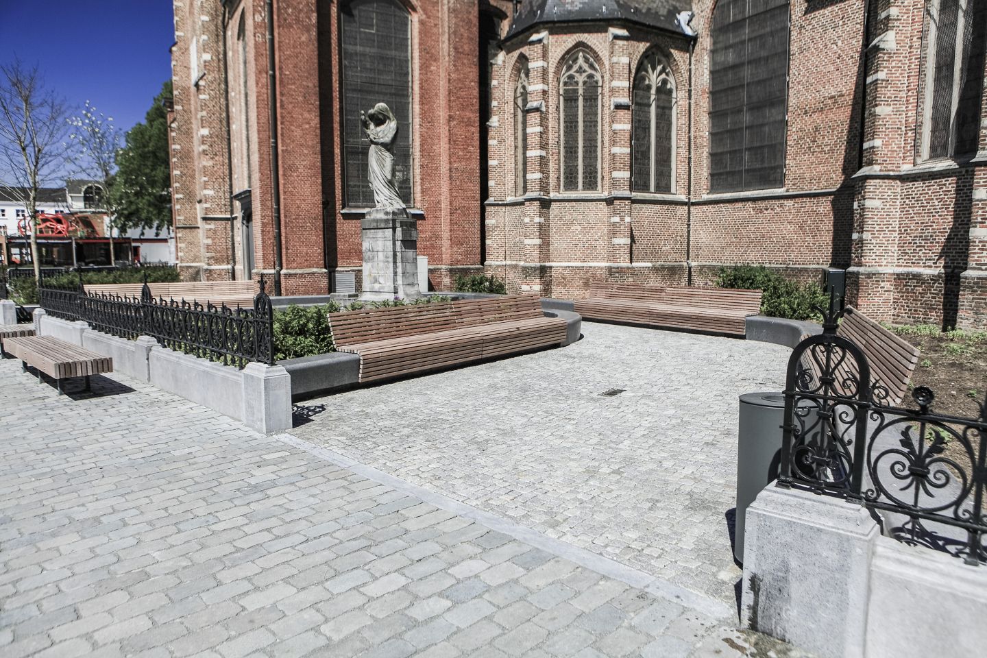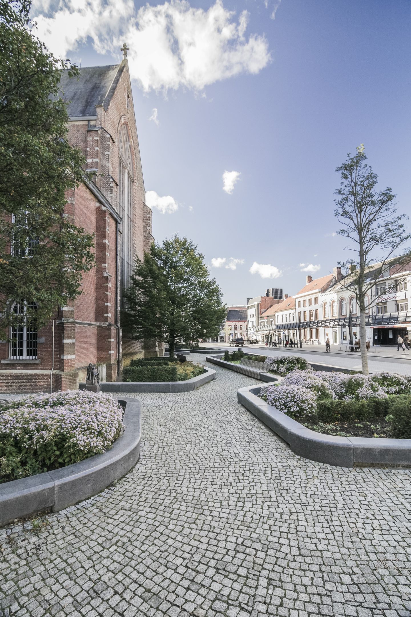 De intieme stadstuin rond de kerk vormt een welgekomen rustpunt in de levendige stad. Er zijn doorlooppaadjes en er is veel zitgelegenheid. Het smeedijzeren hekwerk, in de loop van het ontwerpproces beschermd als monument, werd op natuurlijke wijze geïntegreerd in de rand van de tuin.