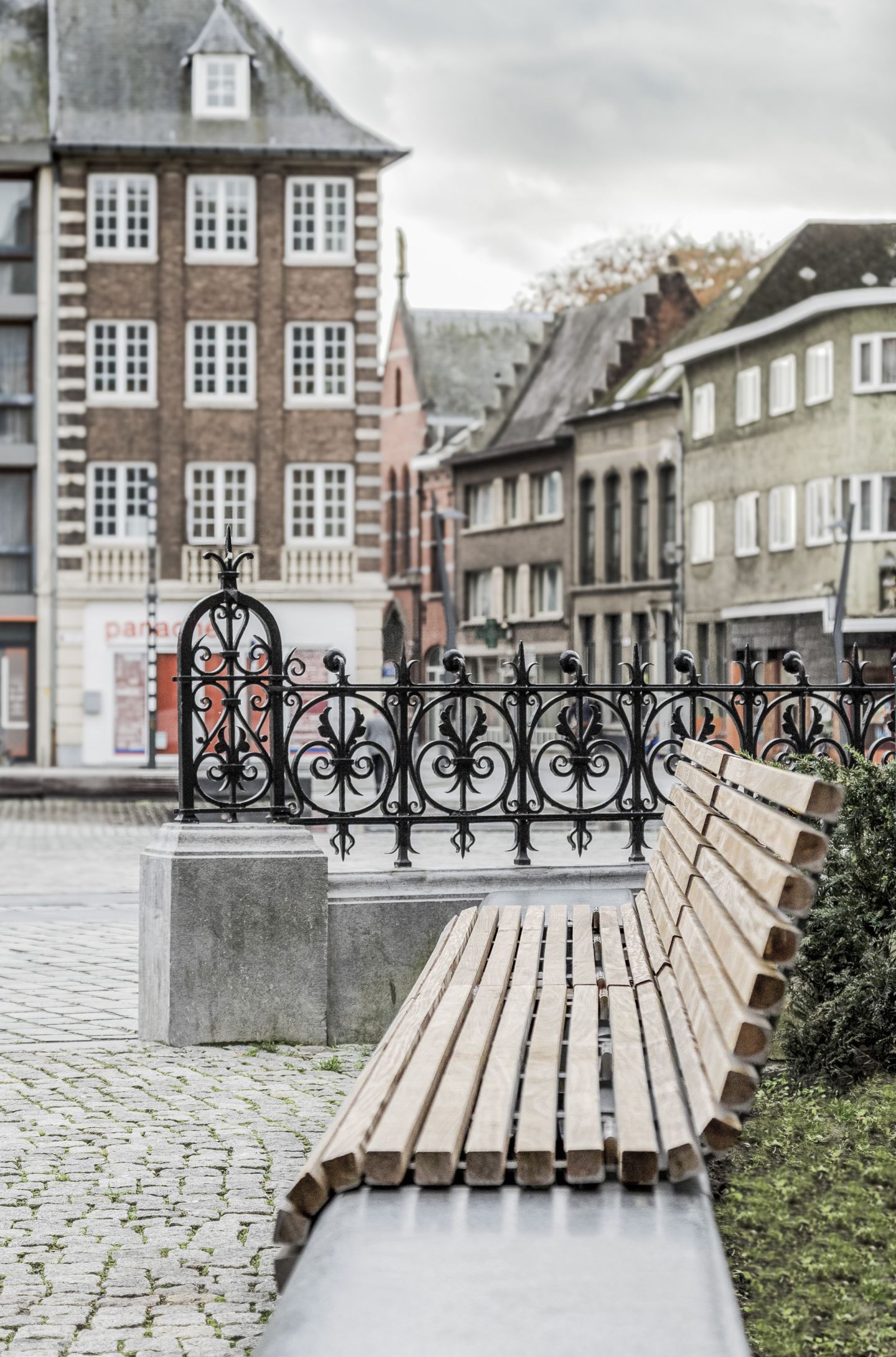 Aan de rand van het plein bevinden zich nogal wat handelspanden en horecazaken. Daar wordt veel extra ruimte voorzien voor terrassen met daarnaast een ruime loopzone, bushaltes en enkele fietsenstallingen. Blikvanger is een luifel die al het specifieke stadsmeubilair mooi integreert.