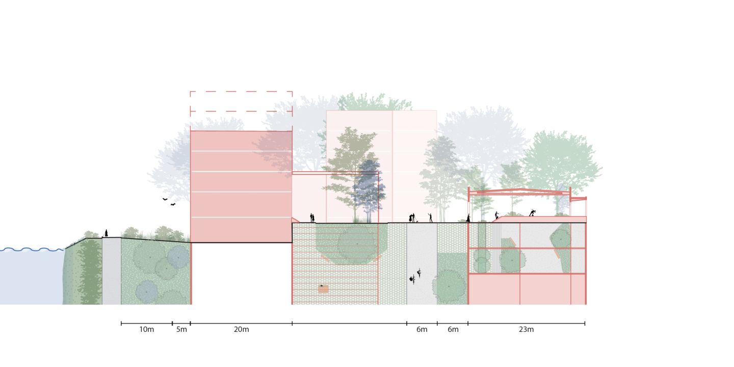 Het masterplan bestaat uit verschillende deelgebieden waar we een onderscheid maken in gebouwen(clusters) en zones in de publieke ruimte. De gebouwen zijn vaak een uitbreiding van de huidige functies op de site (feestruimte, jeugd- en ontmoetingsgebouw…) of een toevoeging aan de site (buitenklimmuur, overdekt (skate)park, open school TSM…).