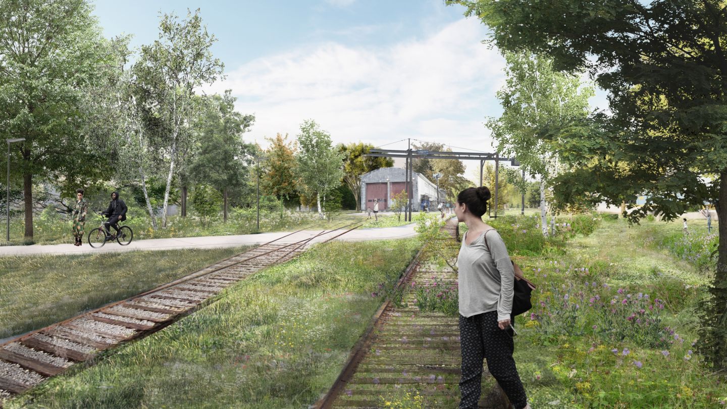 Ter plaatse werden we enthousiast over het brede horizonbeeld vanuit het toekomstige park: vanop de berm is er een 180° zicht op de stad. Op het terrein bevinden zich nog restanten van het rijke spoorverleden waaronder het verlaten Oost station met sympathieke perronluifels, de sporen, de spoorkade in natuursteen en een brugkraan. Twee monumentale, private watertorens domineren de skyline. We gaan aan de slag en consolideren die onderdelen als het erfgoed van morgen.