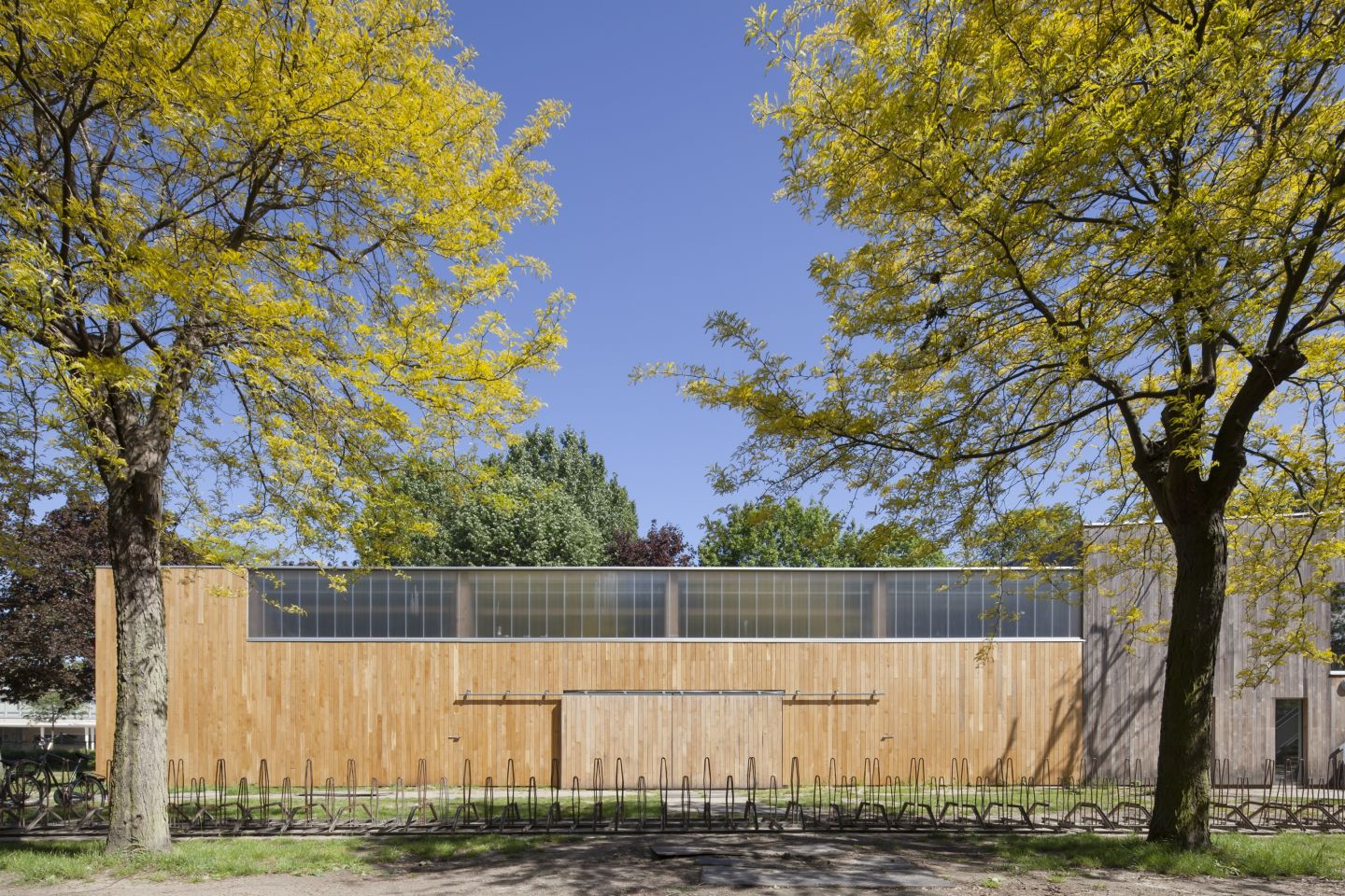 De architectuur van het loodsgebouw sluit aan bij de lokalen van fase 1 en verwijst naar de maritieme sfeer op Linkeroever.